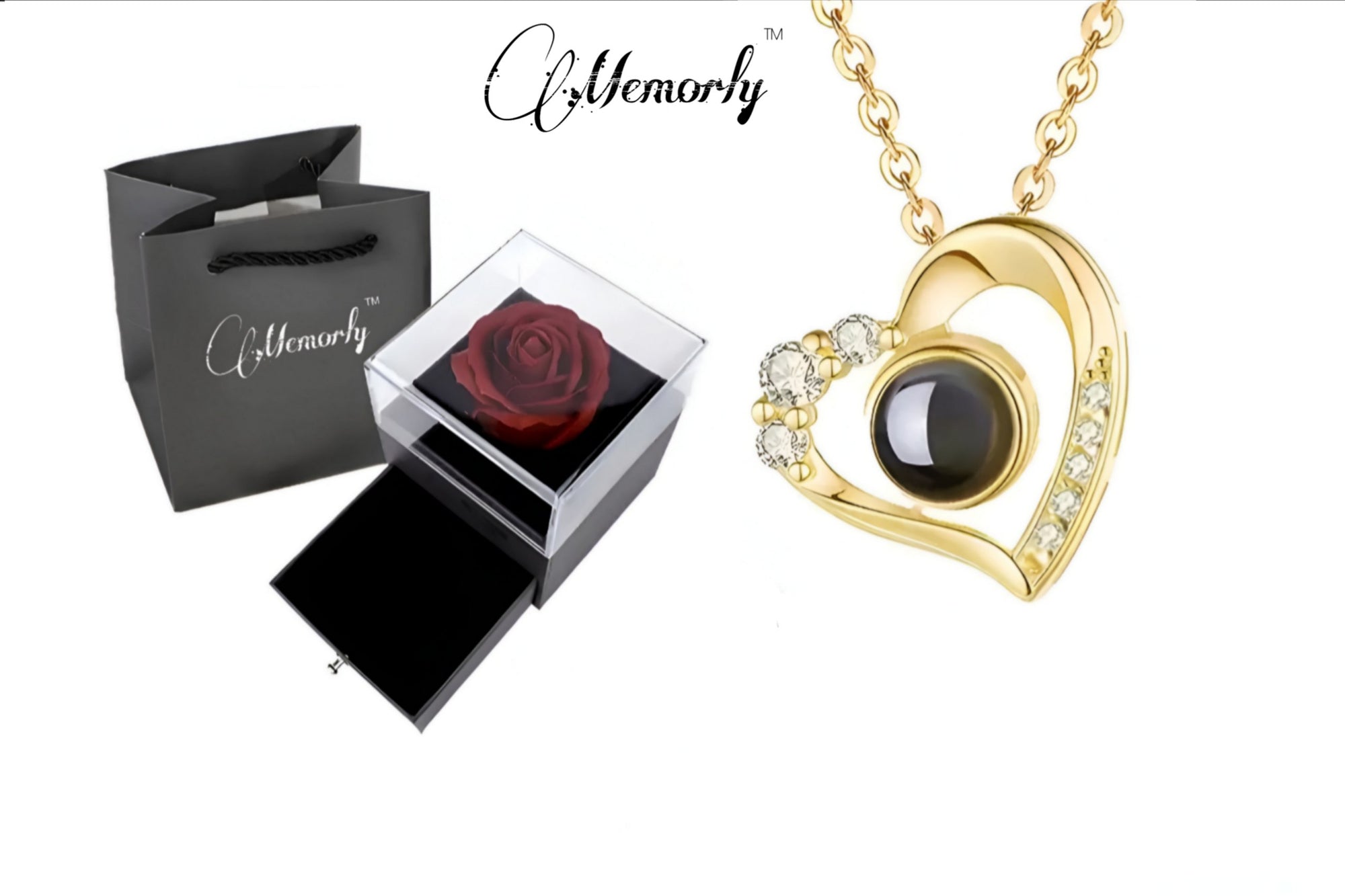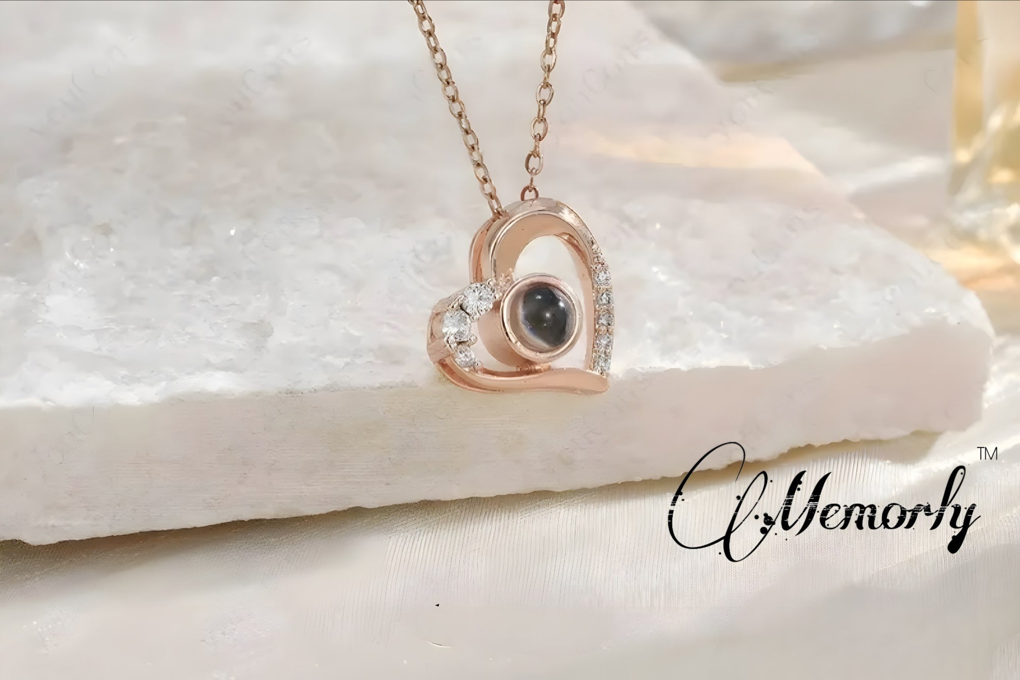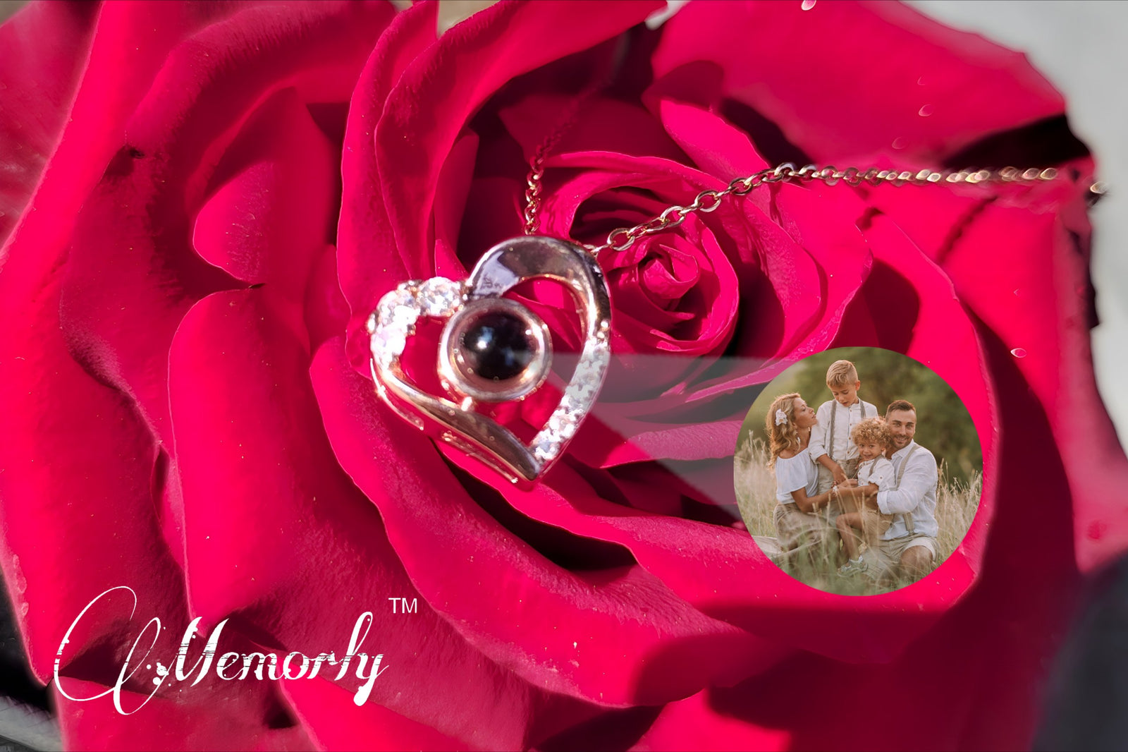 Con la collana proiezione di Memorly™, puoi custodire un momento speciale in un gioiello elegante. Basta un raggio di luce per rivelare la tua foto nascosta!